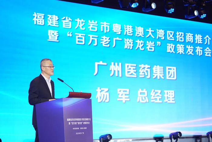 当天下午,福建省龙岩市粤港澳大湾区招商推介会暨“百万老广游龙岩”政策发布会召开,与会嘉宾共商合作,共谋发展。杨军作为企业家代表在会上发言,表示广药集团将真抓实干,在与龙岩市的深入合作中,携手奋进,努力绘就高质量发展的新蓝图!