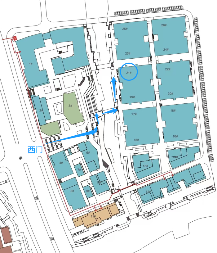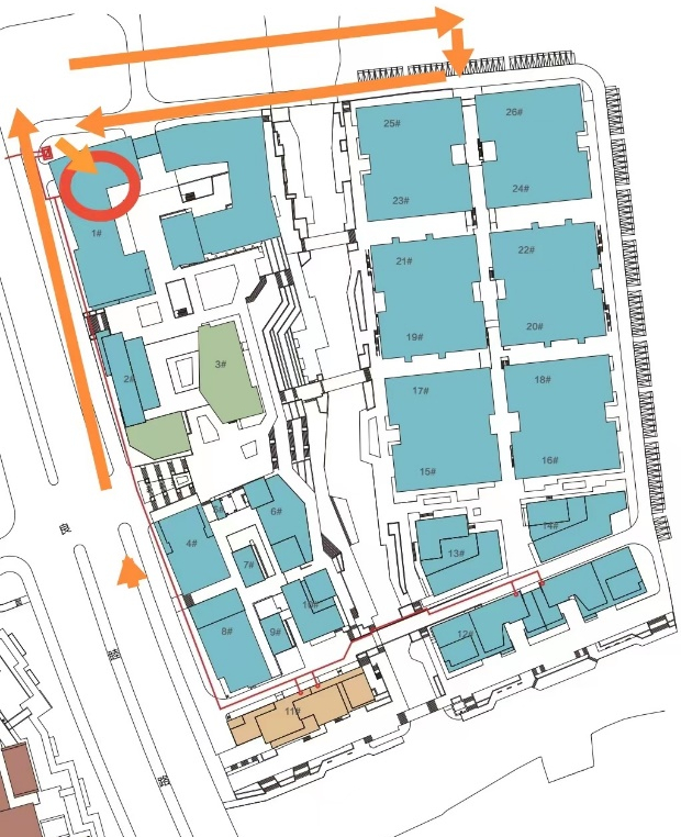 A:车辆入口为未来科技城梦想小镇北门,车辆路线如图所示。红圈为地下车库。