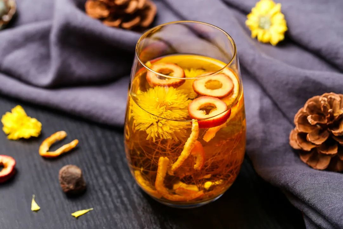 葛花、菊花分别为10克、15克,洗干净冲开水密封浸泡15~20分钟,代茶饮,解酒护肝,和胃止吐。适用于醉酒呕吐,津伤口渴,头目晕眩。