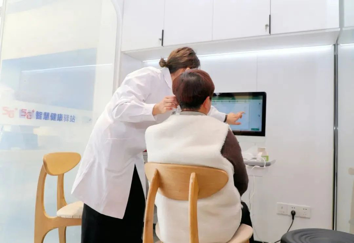 目前,余村智慧健康驿站的运营通过迪安诊断派驻健康管理团队,以余村日间照料中心为基地,由家庭医生团队与社区健康管理师团队为社区居民提供持续、可及、高质量的综合健康干预服务;同时充分应用现代科技手段5G、物联网技术等实现个人或家庭终端与区域智慧健康平台数据互联互通,具备健康数据的检测上传、远程会诊、健康咨询、24小时自助发药、预约挂号、智能化中医诊治等基本功能,完善并形成“医、养、护”紧密结合型“智慧医养”服务新模式的闭环式生态圈,推动城乡“共同富裕”健康先行。