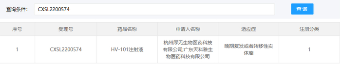 HV-101注射液是杭州厚无生物医药科技有限公司和广东天科雅生物医药科技有限公司联合申报的全新一代自体肿瘤浸润淋巴细胞(TIL)细胞治疗疗法,拟开展用于晚期复发或者转移性实体瘤的临床研究。HV-101是国内第四款获批临床的TIL细胞疗法。