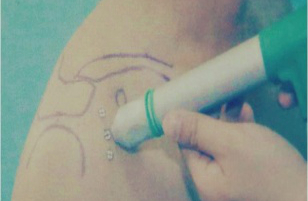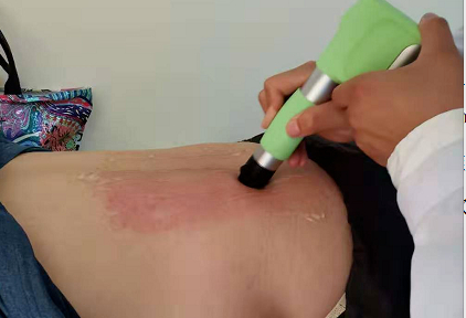 沿肌肉走行及疼痛区域,手持压力轻至中,痛点冲击波200-300次,治疗时间:1次/5天,共3-5次。