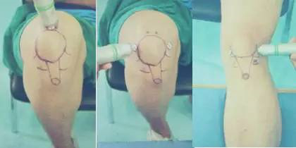 预先在患膝伸直和屈曲位确定并标记痛点,包括膝关节屈伸活动时、韧带被动牵拉时以及按压时的痛点,并结合X线及MRI表现。
