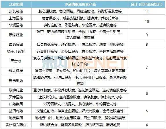 消化系统疾病用药占了34个:舒肝宁注射液以超11亿元的销售额排在榜首;华润医药在该大类销售额超过1亿元的独家中成药有3个,扬子江药业、上海医药、上海黄海制药、步长制药各有2个。