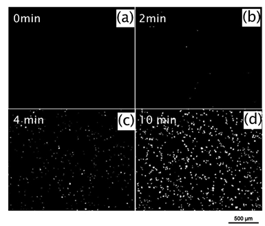图示:偏振光显微镜下观察到的晶核与结晶大小随时间的变化