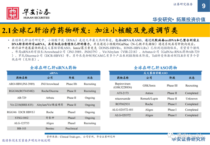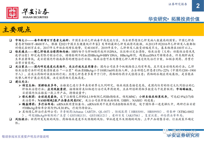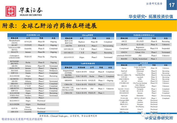 【华安医药】创新药专题之二:慢乙肝临床治愈研究乙肝治愈新希望频现,新疗法进度与海外比肩