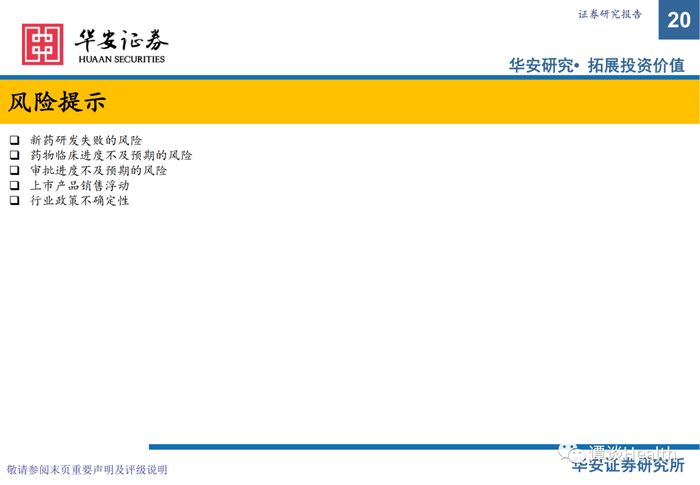 风险提示:新药研发失败的风险、药物临床进度不及预期的风险、审批进度不及预期的风险、上市产品销售浮动、行业政策不确定性。
