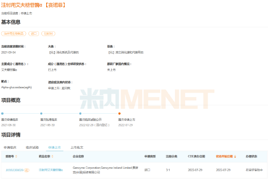 注射用艾夫糖苷酶α项目进度