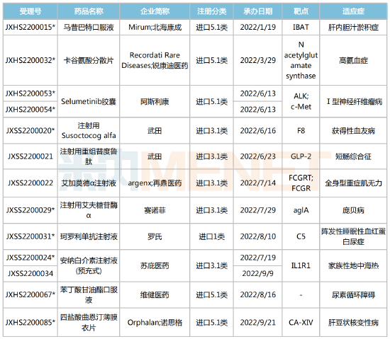 2022年中国获批上市的罕见病药