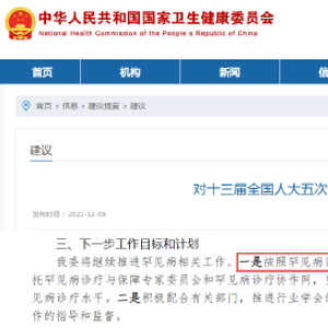 日前,国家卫健委发布一份针对《关于加大对罕见病诊治投入力度的建议》的答复。其中提及,国家卫健委将继续推进罕见病目录制订工作程序,适时调整更新第二批罕见病目录。此外,中华医学会拟成立首个国家级罕见病权威医学组织,即中华医学会罕见病分会。