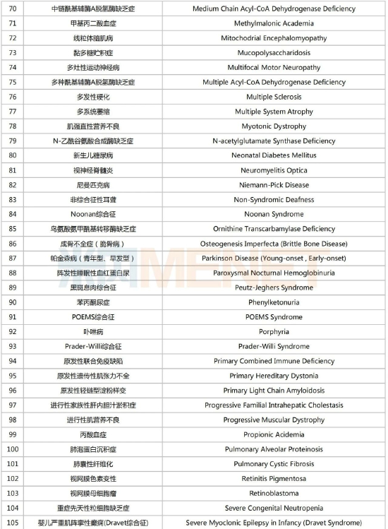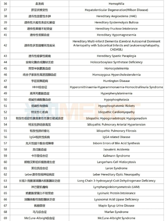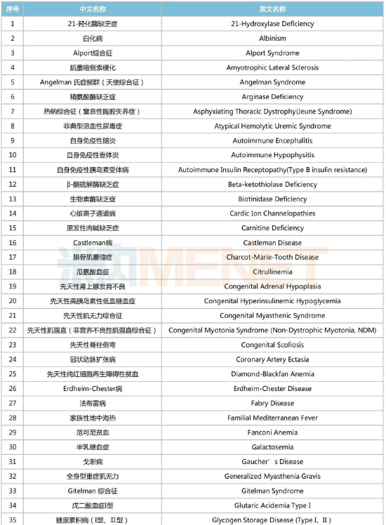 第一批罕见病目录