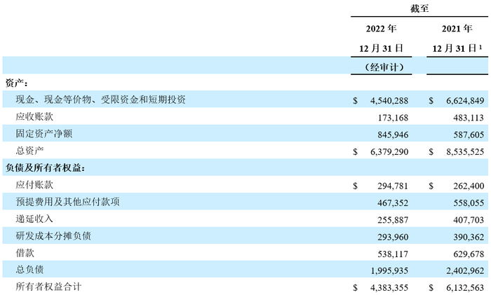 2021年全年,经营活动现金支出为13亿美元,主要由于净亏损15亿美元及净经营资产和负债增加1.183亿美元,部分被2.774亿美元的非现金费用所抵销;资本支出为2.629亿美元;融资活动提供的现金为36亿美元,主要来自2021年12月科创板发行的募集资金净额。