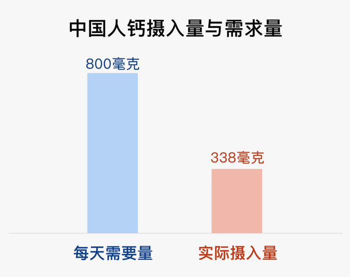● 国际骨质疏松基金会的数据:中国人每天平均摄入钙 338毫克 ;