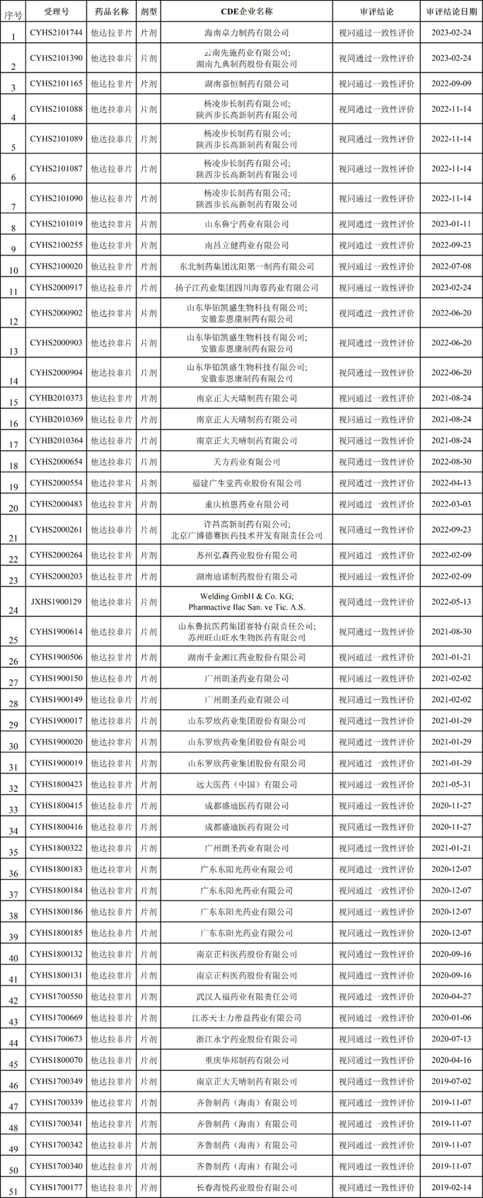 他达拉非新增3家过评!过评数达51个!(附列表)