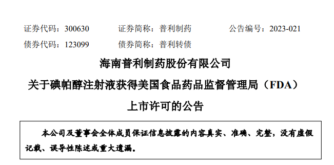 近日,两药企分别发布了产品海外上市进展公告,具体为普利制药申报的碘帕醇注射液获得了FDA发放的上市许可、人福医药申报的磷酸奥司他韦干混悬剂获得了FDA发放的上市许可。
