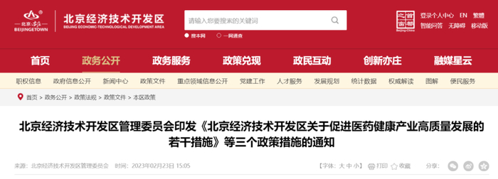 《北京经济技术开发区关于促进医药健康产业高质量发展的若干措施》