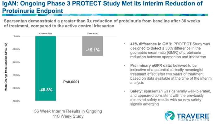此次批准基于正在进行的中的III期PROTECT关键中期结果,该研究是迄今为止IgAN中最大的干预性研究,评估了400mg Filspari与300mg irbesartan在404例18岁及以上IgAN患者中的安全性和有效性。