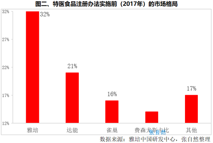 据雅培中国研发中心统计,在2017年之前,仅雅培一家的市场规模就占了全国市场的1/3(32%),达能和雀巢分别占了1/5(21%)和1/6(16%)。