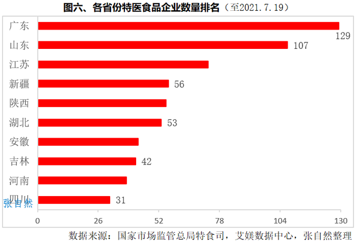 尽管到2022年底,持有特医食品批文的企业仅有34家,但到2021年7月19日为止,我国特医食品企业就已达近千家(954家),其中,广东和山东都已过百家,分别有129家和107家。