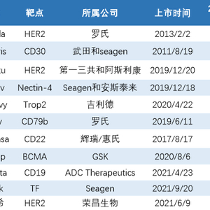 Kadcyla(Adptrastuzumab emtansine,恩美曲妥珠单抗)由罗氏和ImmunoGen共同研发,于2013年2月22日被FDA批准用于HER2阳性转移性乳腺癌。2020年1月21日,该药成功在中国获批。它是我国首个上市的抗体药物偶联物(ADC),也是全球首款被批准用于实体瘤的ADC。