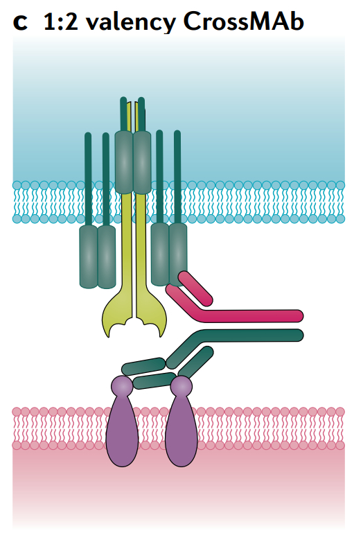 对称模式的双特异性抗体保留了Fc区域,更接近于天然抗体,但在大小和结构上有所不同。这些差异可能对与天然抗体相关的有利特性(如稳定性和溶解度)产生负面影响,从而可能损害这些双特异性抗体的理化和/或药代动力学特性。