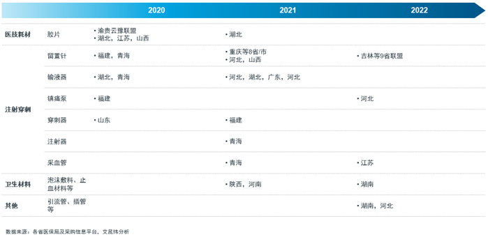 2020年开始,全国各省相继开展低值耗材带量采购,其中胶片、留置针、输液器等集采区域范围相对广泛,其它低值耗材也逐渐被纳入集采,但仍处于省市带采的探索阶段。