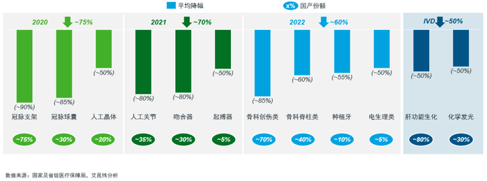 图6:2020-2022部分产品带量采购平均降幅
