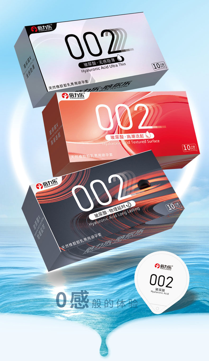 在聚氨酯001避孕套基础上添加华熙生物——护肤级玻尿酸润滑剂,相比较普通硅油更加易清洗,一冲即净,高导热度让你感受TA的体温。