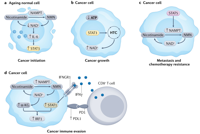 NAD+作为氧化还原反应中的辅酶在能量代谢中必不可少,其表达水平会随着人类年龄增长而降低,并与癌症发病率正相关。
