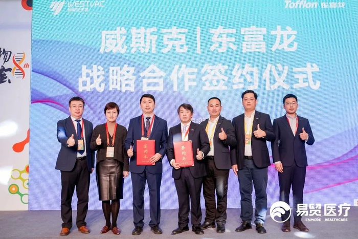 3月18日下午,东富龙科技集团股份有限公司(以下简称“东富龙”)与威斯克生物医药有限公司(以下简称“威斯克生物”)在2023年易贸EBC会议上签署“东富龙与威斯克生物的战略合作协议”。双方将在生物医药领域的工艺设计与开发、厂房设计咨询、施工、验证、生物原液上下游、制剂、检查包装等多个领域,开启全方位的深入合作,开启双方合作新篇章!