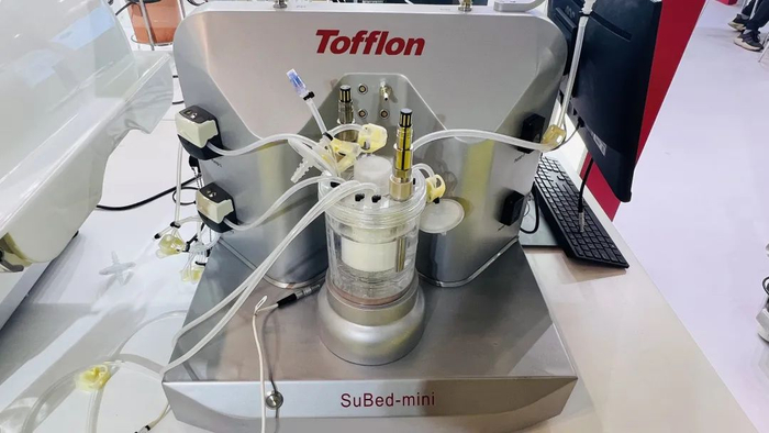 SuBed-C生物反应器系统应用于生物制药疫苗生产、细胞治疗及基因治疗等领域,特别是设计腺相关病毒、慢病毒、腺病毒、溶瘤病毒等病毒载体及外泌体的制备。SuBed-C生物反应器全自动化,减少人员参与,从控人变成控物;设备占地面积0.64㎡,可表达出500㎡培养面积,相当于3000只培养转瓶(1700c㎡/只);利用水幕式换氧技术可以实现高密度细胞培养;培养过程中,培养基沿特殊线路循环,可实现地低剪切力;可实现低密度接种。