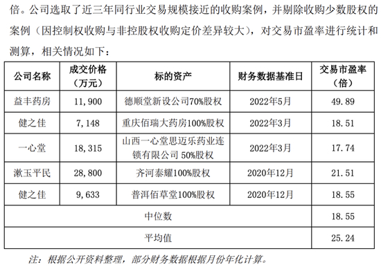 对此,公告指出,对比上述数据,本次交易市盈率15.89倍,低于同行业可比交易案例市盈率的中位数与平均值。同时,综合考虑丙方在安庆区域市场占有率优势,以及对老百姓大药房的战略意义,本次交易估值具有合理性。具体如下图: