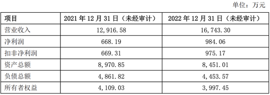 从公布数据来看,丙方2021年营收12916.58万元,扣非净利润669.31万元;2022年年营收16743.3万元,扣非净利润975.17万元。