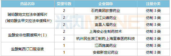 今年以来抗抑郁化药获批上市和过评情况