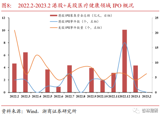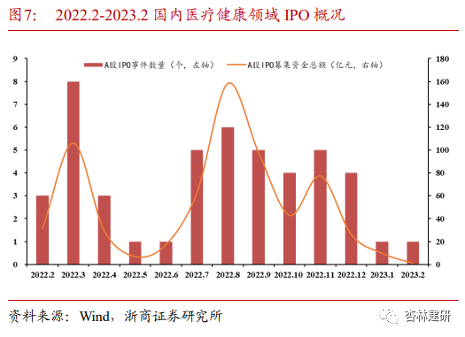 全球2月IPO数量较少。2023年2月A股医药生物行业仅北交所峆一药业1家公司上市。此外,港股2月无医药公司IPO;美股2月共发生3起IPO事件。