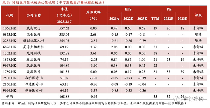 从市场表现来看,本周A股和H股创新药械表现分化。根据Wind板块分类,A股创新药械板块周涨跌幅(算术平均)分别为-1.95%及-3.16%。其中涨幅排名前五的个股分别为天力士+8.60%、上海医药+6.77%、康弘药业+6.61%、微芯生物+6.41%、复旦张江+3.84%。本周H股创新药械板块平均涨跌幅分别为+0.32%及-0.64%。其中涨幅排名前五的个股分别为东阳光药+7.70%、三生制药+5.53%、基石药业-B+4.86%、康哲药业+3.80%、中国生物制药+3.78%。