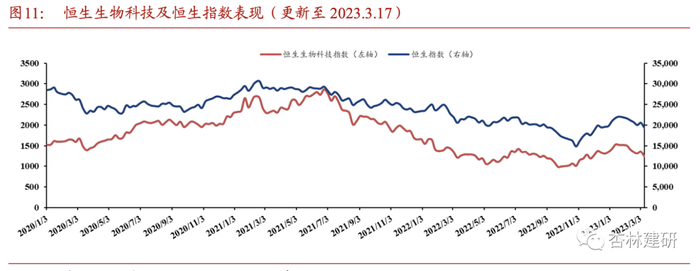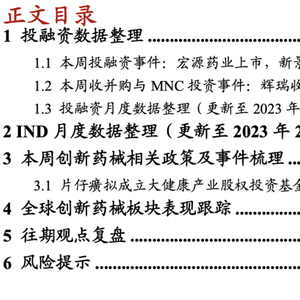 本周国内外创新指数表现分化。本周XBI 指数上涨1.11%,跑输标普500指数0.32pct,2023年以来XBI指数下降7.83pct,跑输标普500指数9.84pct。本周恒生生物科技指数上涨2.52%,跑赢恒生指数1.49pct,2023年以来恒生生物科技指数下跌5.77pct,跑输恒生指数4.44pct。本周CS创新药指数下跌3.46pct,跑输沪深300指数3.25pct,2023年以来CS创新药指数上升1.69pct,跑输沪深300指数3.94pct。