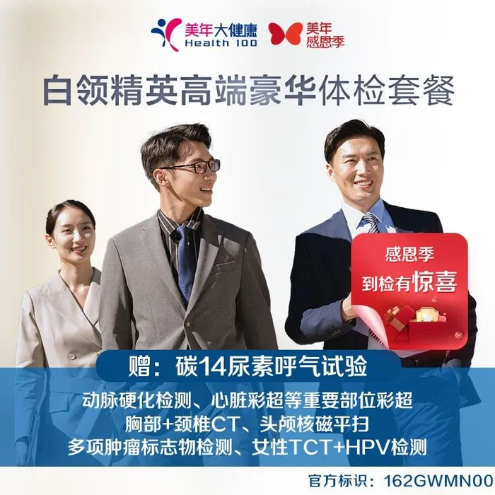 一年一次的体检非常重要,与其得了病被动接受检查,不如提前发现,主动出击,不错过最好的治疗时期,白领精英高端豪华体检套餐,一次性帮您检查全身上下的问题,全面、省心!