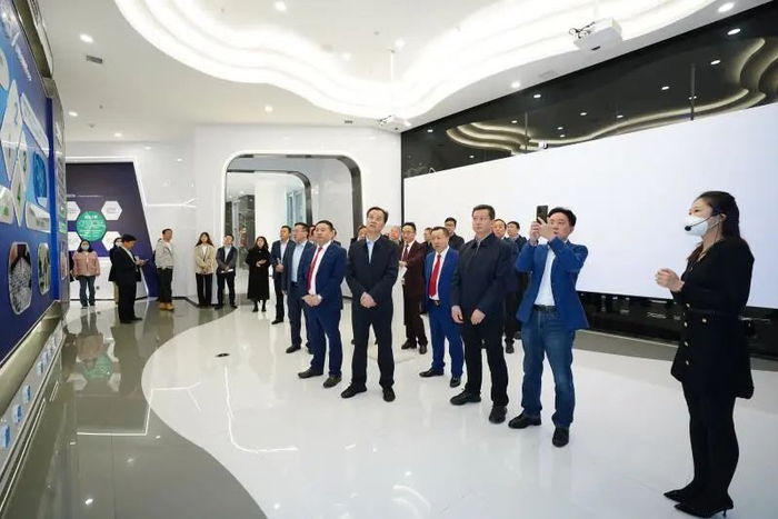 考察组首站来到四川军科生命科学集团。该公司是由四川大学生命科学学院丁显平教授团队与北京中关村国家开放实验室联合多位长期从事医学和生命科学的专家及退役军人于2019年发起成立的,主要从事生物医学技术的研发、推广服务及再生医学的技术开发、细胞贮存、制备及转换。考察组一行参观了该公司前沿医学科技大厅,详细了解了组建以来在癌症、白血病以及糖尿病等治疗方面的最新研发成果,了解了该公司在研发人才引进、技术转化以及市场开拓等方面的经验做法。窦生铭、李继红详细介绍了集团公司组建以来积极探索有效路径,创新工作方式方法,形成了以科技研发和市场营销为重点的“哑铃型”发展战略有关情况,表示集团已搭建了自有的科技研发平台,牵头组建了中医药行业第一个创新联合体,成立了核素药公司,正在筹划与省内外科研机构开展癌细胞靶向治疗研究,已在宣肺止嗽合剂二次开发、特药资源的深度利用等方面取得了新进展、开发了新产品。窦生铭表示,集团需要眼光放远,格局放大,定位放宽,持续与行业内优秀行业对标学习,在更广领域,更深层面取得更大开拓。希望双方发挥所长,寻求战略合作点,在医学研发领域、大健康产业等领域共同开展项目研发。考察组成员边走边看,围绕如何激发内生动力、加强优势互补,把资源禀赋优势高质量转化为发展胜势进行了深入讨论。