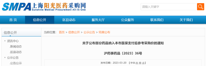 3月20日,上海市医药集中招标采购事务管理所发布通知,调整部分纳入本市医保支付药品的参考采购价。