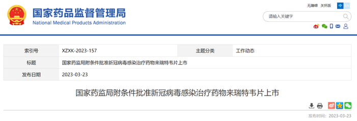 来瑞特韦片获批上市!用于治疗轻中度新冠病毒感染成年患者