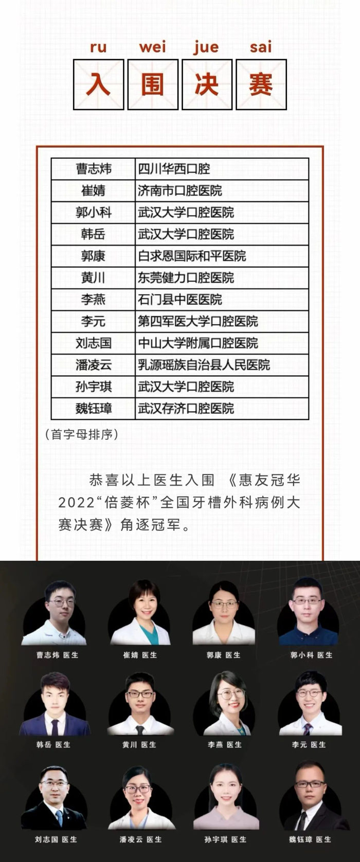 2023年3月22日,在沈阳举办的“倍菱杯”全国牙槽外科病例比赛总决赛公布获奖名单,武汉存济口腔医院颌面外科魏钰璋副主任获得大赛三等奖。