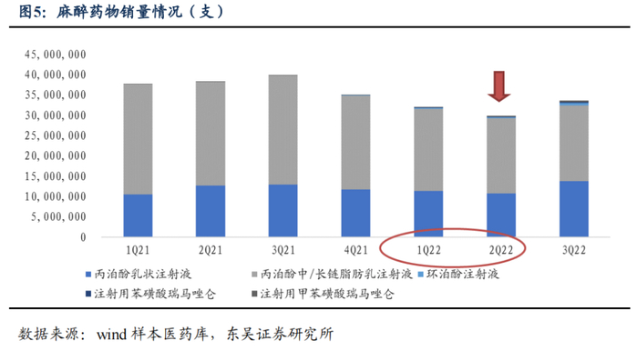 据东吴医药统计数据显示,2022年二季度由于全国多地疫情影响,麻醉药物单季度销量触底;不过,最坏的时刻早已过去。