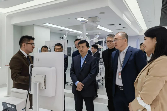 李楚源一行首先参观了迈瑞医疗总部,详细了解了迈瑞医疗旗下产品线以及瑞智联、瑞智检、瑞影云三大医疗设备集成化管理体系,并给予了高度评价。随后,双方开展了座谈交流。