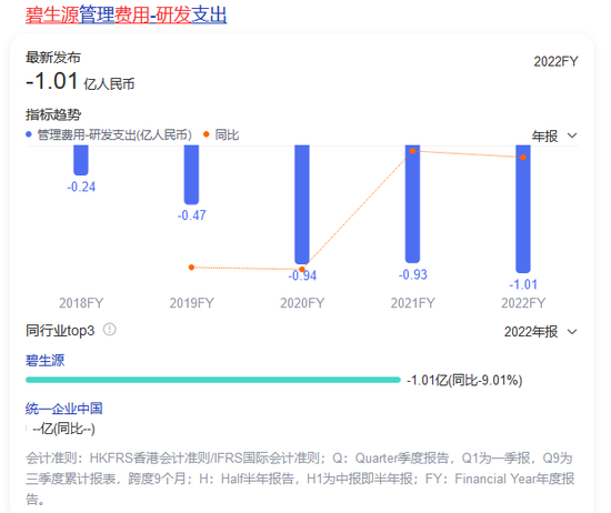 2018年至2022年,碧生源研发投入分别为0.23亿、0.47亿、0.94亿、0.93亿、1.01亿,持续增加,且最近三年维持在亿元左右,可见其加强了创新力度,值得肯定。