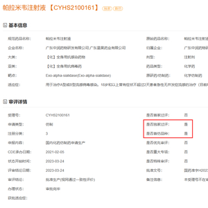 中润药业继2022年首个批文——磷酸奥司他韦胶囊获批后,2023年接连获批了3个产品:缬沙坦氨氯地平片(II)、注射用右雷佐生,以及近日获批的抗流感注射剂——帕拉米韦注射液(15ml:0.15g),国内首仿,独家一致性过评上市。