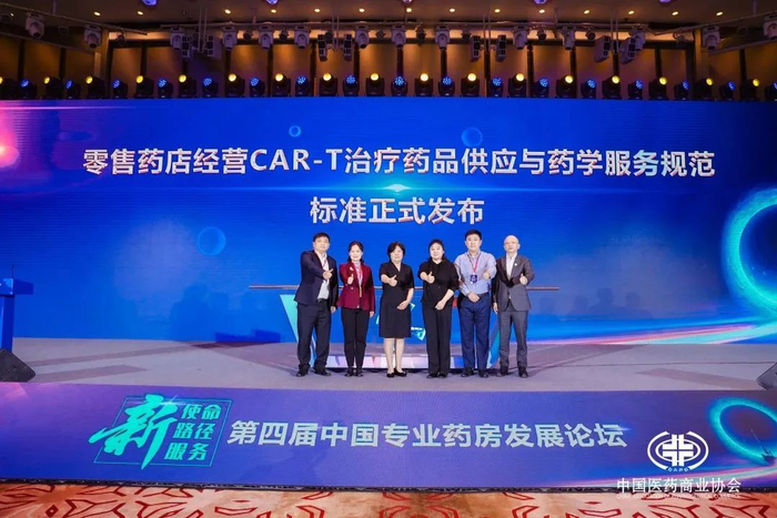 论坛同时举行《零售药店经营自体嵌合抗原受体T细胞(CAR-T)治疗药品供应与药学服务规范》标准发布仪式。该标准由中国医药商业协会牵头起草,复星凯特为主要起草人。复星凯特CEO黄海表示:“中国细胞疗法的蓬勃发展离不开政府监管部门与行业协会、专家学者的大力支持。细胞治疗药品流通领域的规范化、高质量发展也需要构筑一系列的行业标准。复星凯特将积极与监管部门和行业机构共建CAR-T规范化发展的良好行业生态。”