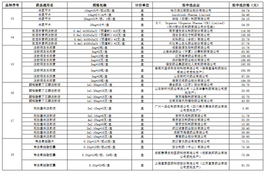 原研药企中,N.V.Organon的米氮平片,ALFASIGMA S.p.A.的左卡尼汀注射液均获得拟中选资格。