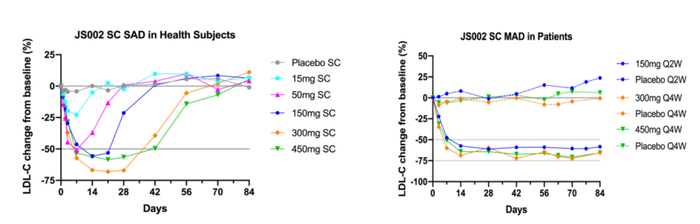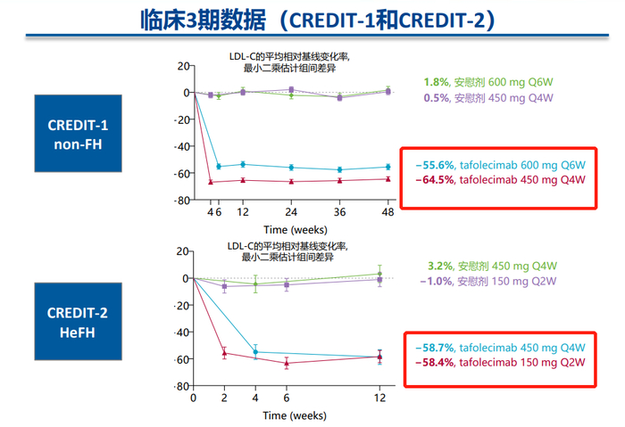 伊努西单抗是康方生物与东瑞制药合资的康融东方研发的创新PCSK9单克隆抗体,用于治疗原发型高胆固醇血症和混合型高脂血症。2期临床研究数据显示,伊努西可显著降低血清LDL-C较基线水平,第12周时,450mg Q4W和150mg Q2W两种给药频次下,平均降低分别为65.48%和63.69%。