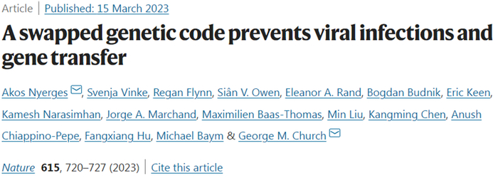 Akos Nyerges et al. A swapped genetic code prevents viral infections and gene transfer. Nature, 2023, doi:10.1038/s41586-023-05824-z.